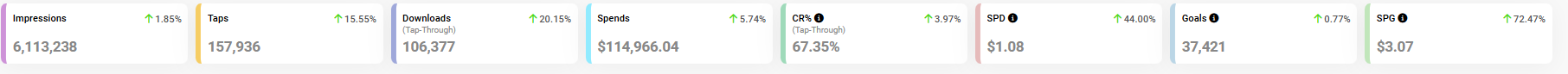 - CR% (Conversion Rate): The percentage of users converting from taps to downloads.